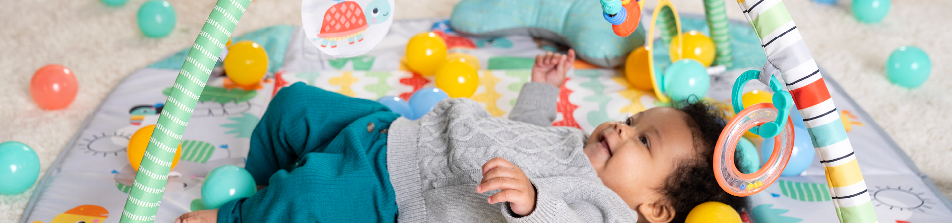 Bright Starts Activity Play Gym is perfect for babies. This gym grows with your child. Our wide selection of play mats makes floor time fun. This colourful, fun gym has adjustable walls. The walls are a barrier during play and tummy time, keeping the colourful balls inside the gym. This activity mat is flexible for any age or stage. Shop different themes of Bright Starts play gyms at Baby Bunting.