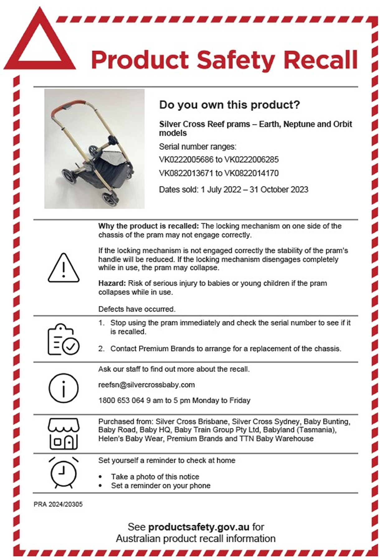 Contact Details: For more details, please contact reefSN@silvercrossbaby.com or call 1800 653 064 (Monday to Friday, 9am - 5pm)